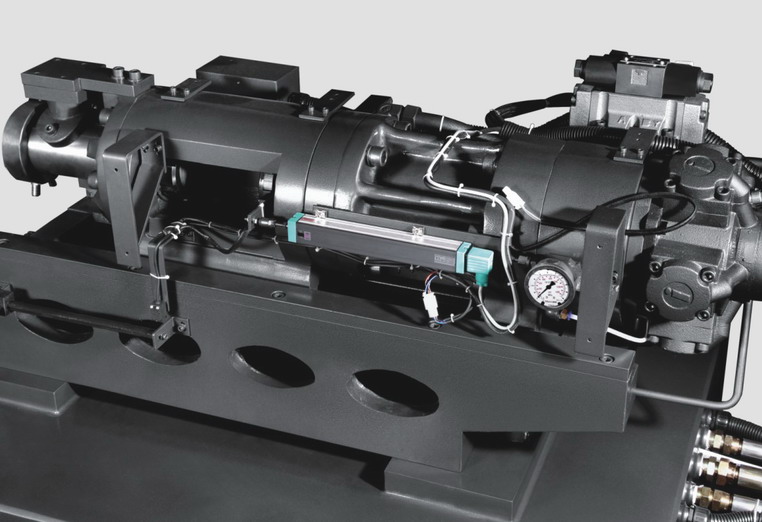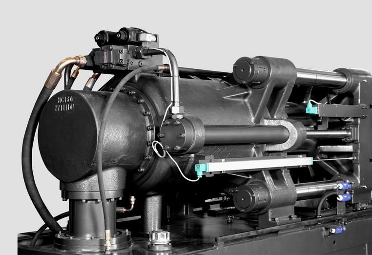 兩組移臺油缸對稱配置,有效防止射咀漏膠。
