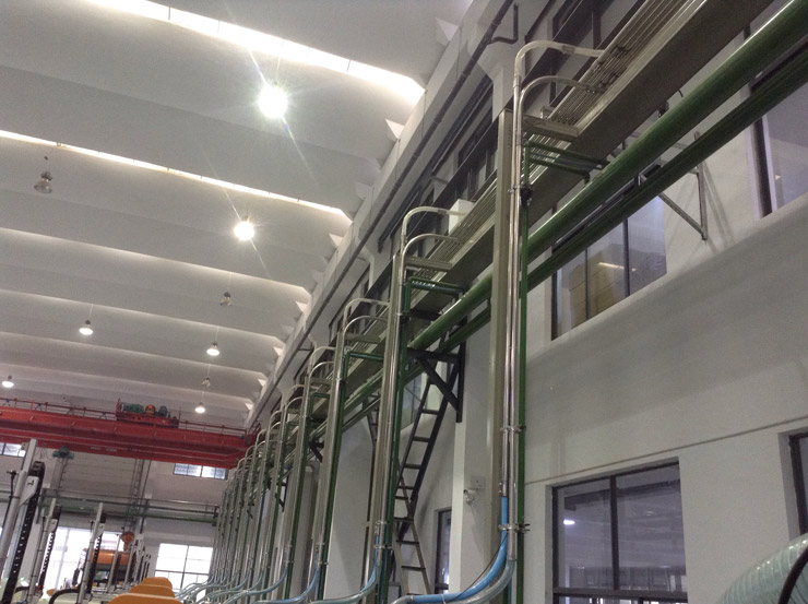 中央供料系统、集中供料系统、统一供料系统实现原料集中处理、封闭输送、彻底避免车间噪音、灰尘、热气污染。解决原料重复人工搬运的高成本及因疏忽而产生 干燥不完全的缺料问题,更不会混入不被允许的其它材料,最重要的是降低采购、耗电、维修成本,提高产品质量,提高工作效率。体现在